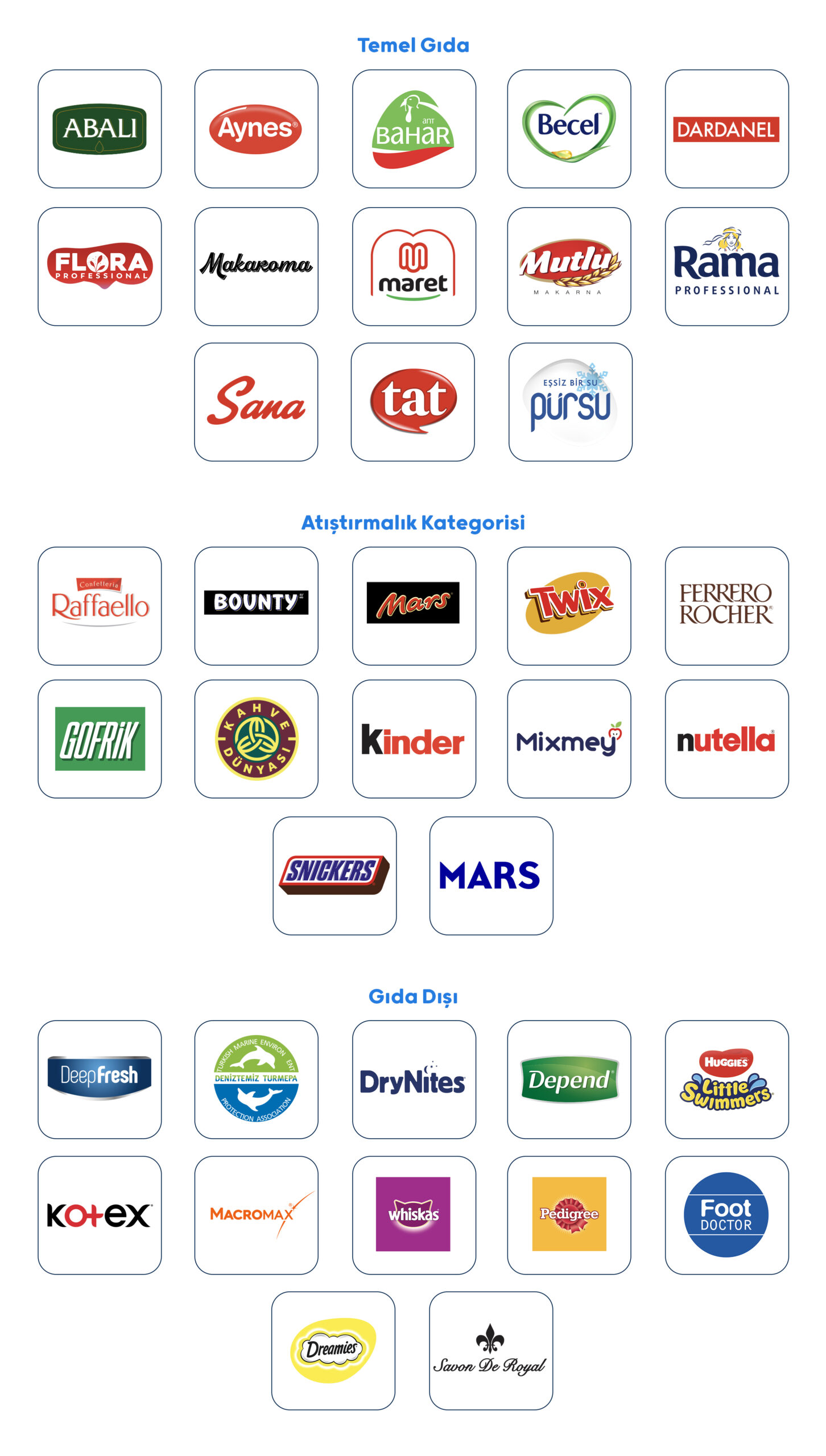 Hızlı tüketim sektöründe günden güne artan markalarımızın ihtiyaçlarını güçlü satış ve dağıtım kanalımız ile sistematik bir şekilde karşılıyor, üst düzey hizmet anlayışı ile hareket ediyoruz.